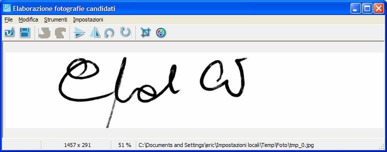Con lo strumento di ritaglio, selezionare l'area più piccola possibile contenente la firma. Doppio clic nell'area per ritagliare, poi salvare la modifica.