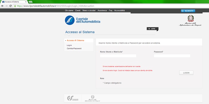Anomalie di funzionamento del Portale dell'Automobilista